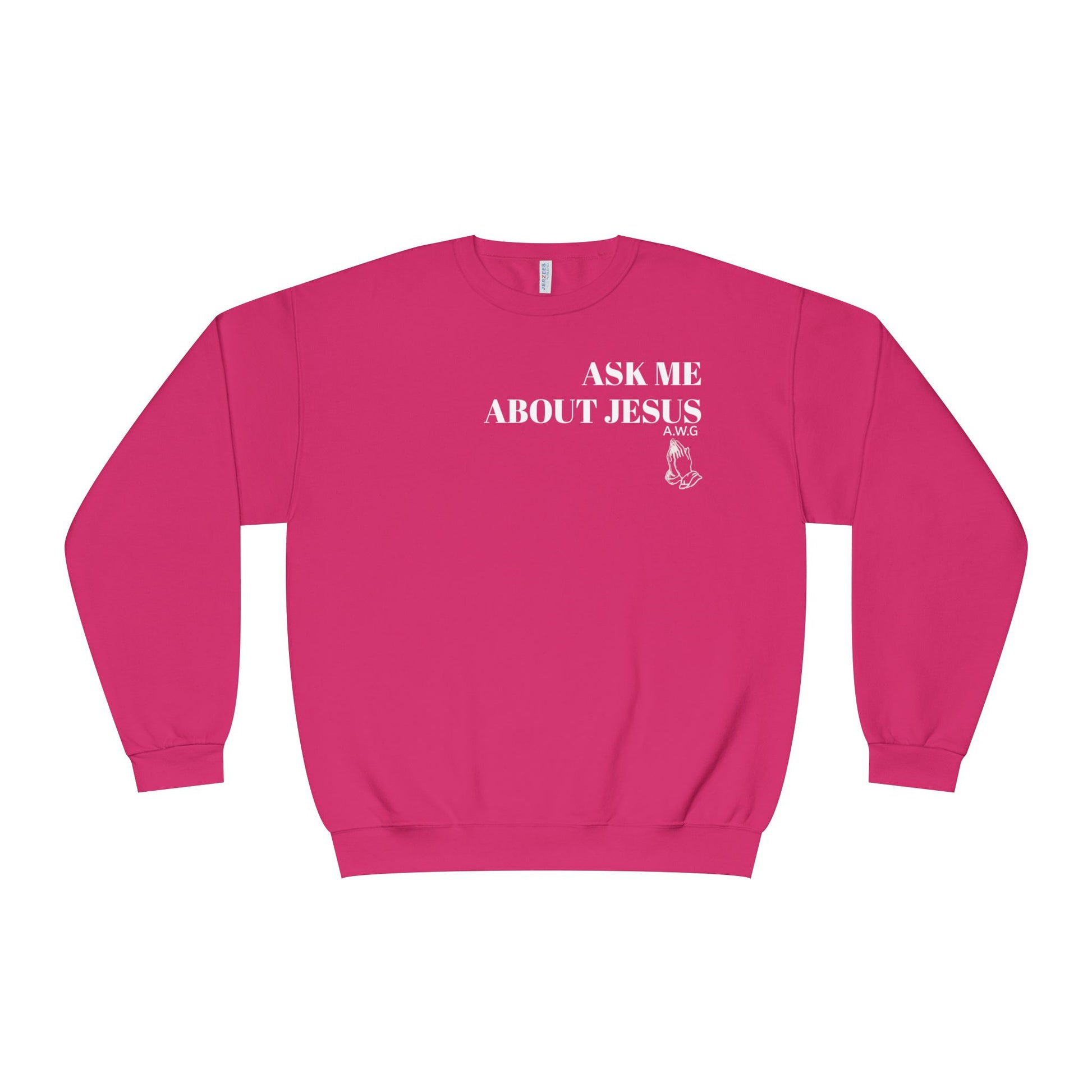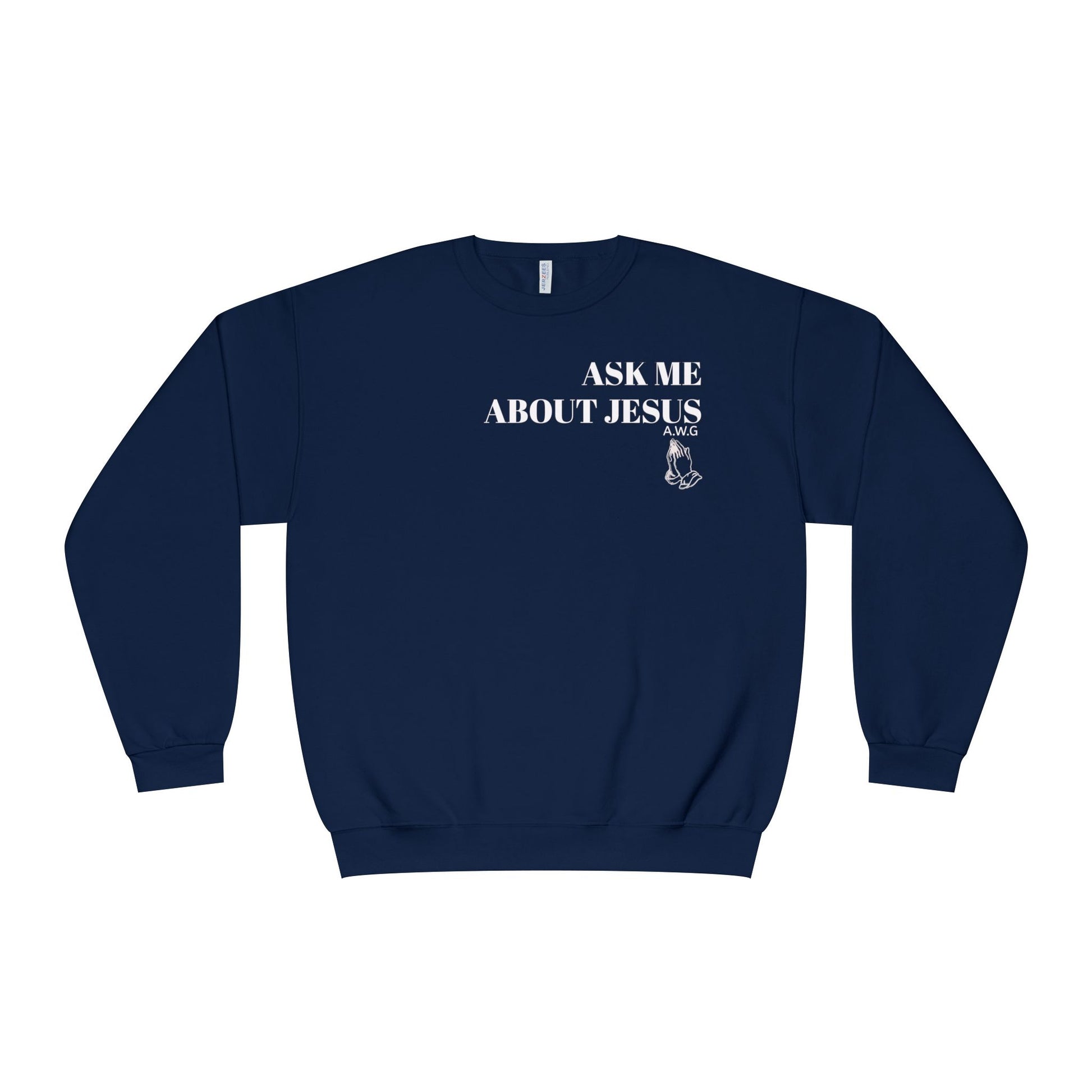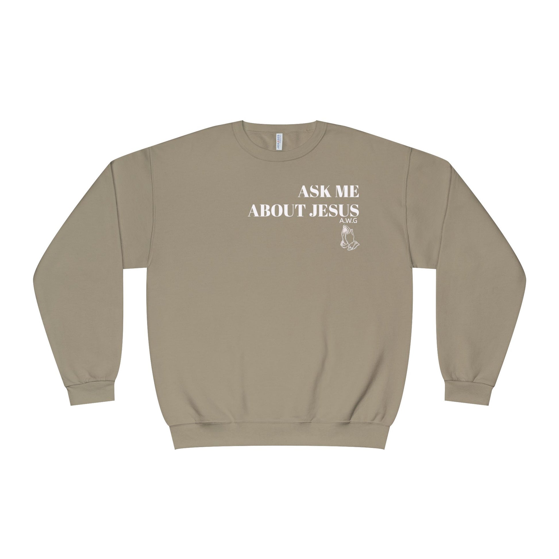 This crewneck sweatshirt features a 'Ask me about Jesus/Jesus changed my life' design, perfect for spreading the Gospel and a conversation starter to plant seeds.