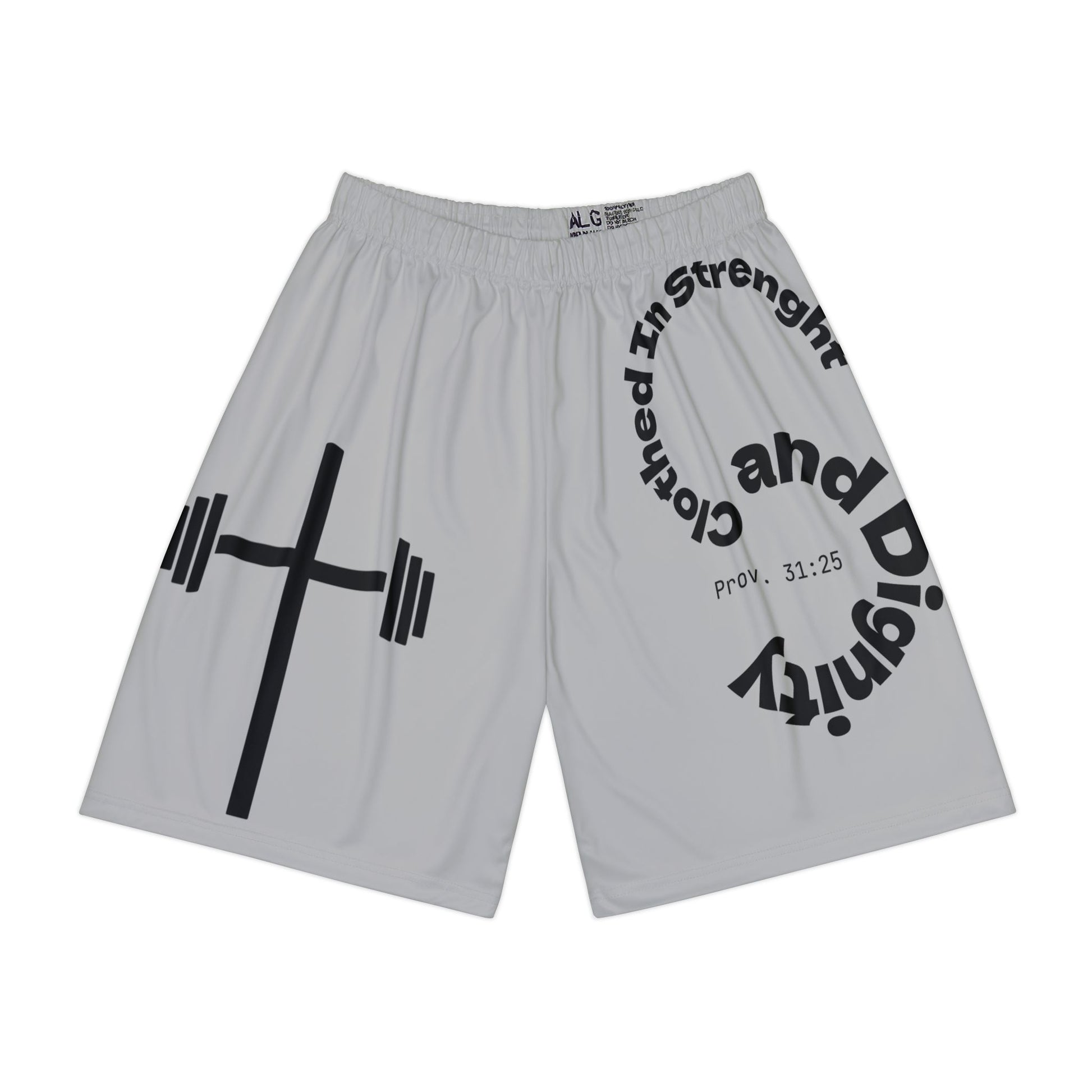 Lightweight and fast-drying, these shorts feature bold graphics, a cross, scripture, and initials, perfect for gym sessions or runs. The elastic waistband and drawstring provide a customizable fit, blending comfort with subtle faith forward style.