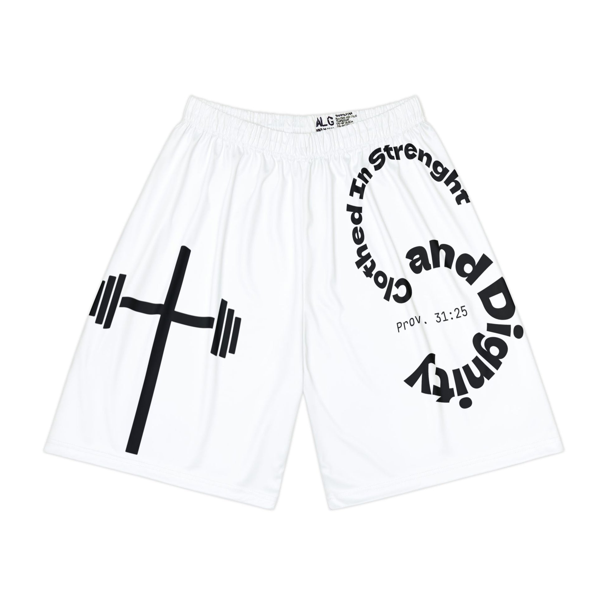 Lightweight and fast-drying, these shorts feature bold graphics, a cross, scripture, and initials, perfect for gym sessions or runs. The elastic waistband and drawstring provide a customizable fit, blending comfort with subtle faith forward style.